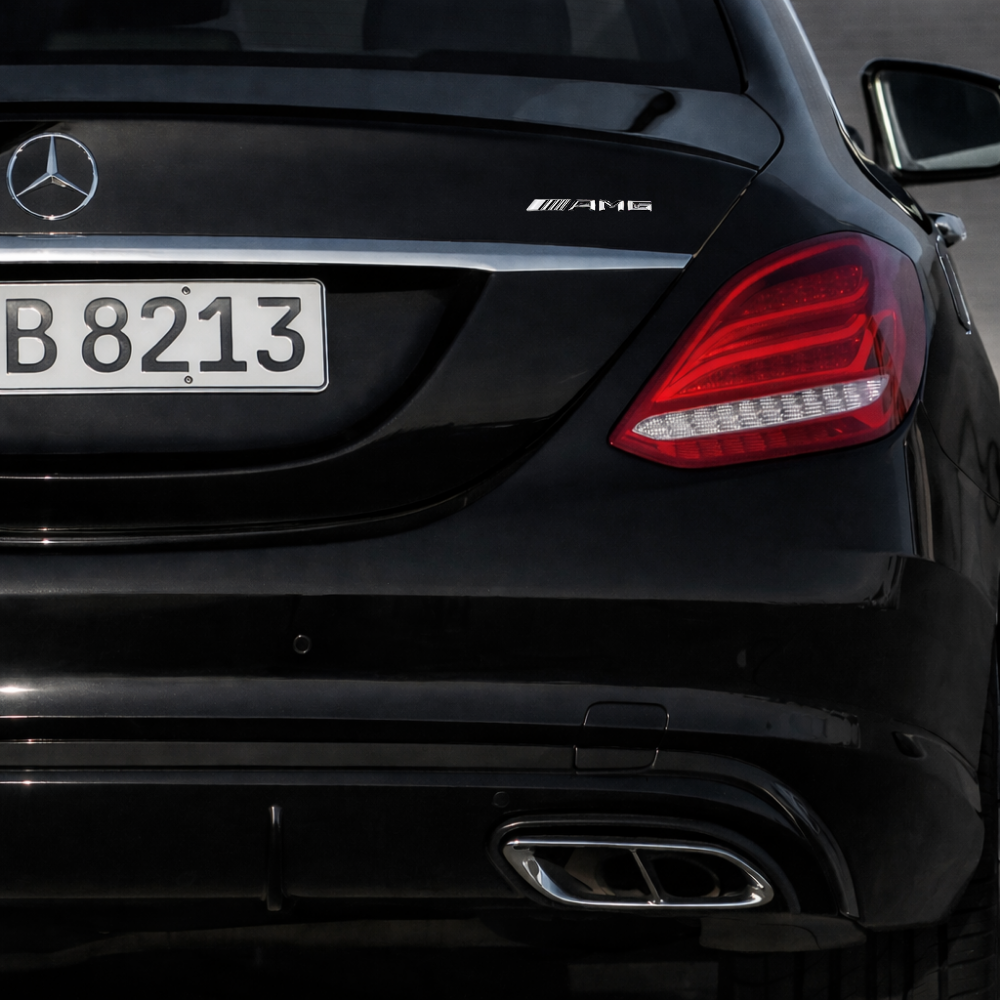 Emblema AMG plateado para maletero Mercedes-Benz. Insignia trasera AMG para Mercedes Clase A, C, CLA, GLA, etc, Alta calidad y ajuste perfecto, incluye un adhesivo 3M para una mayor adherencia