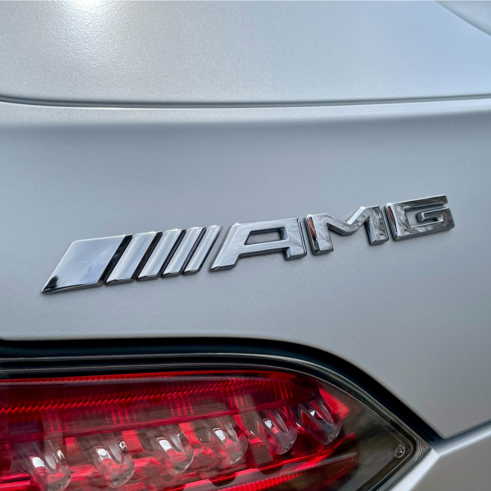 Emblema AMG plateado para maletero Mercedes-Benz. Insignia trasera AMG para Mercedes Clase A, B, C, CLA, CLS, E, G, GLS, GLC, GLE, etc, Alta calidad y ajuste perfecto, incluye un adhesivo 3M para una mayor adherencia